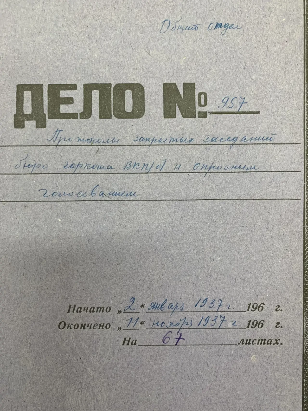 В любом случае странности во всем, что касается окружающей нас информации, были, есть и будут. Вот и на этот раз мой визит в областной партархив принес одну такую чрезвычайно интересную находку. На этот раз мне принесли для работы папку с протоколами закрытых заседаний бюро горкома ВКП(б) с результатами голосований за январь-ноябрь 1937 года.