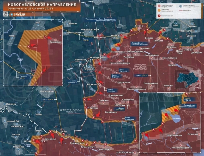 Карта боевых действий на Украине. Свежие данные на 25 июня
