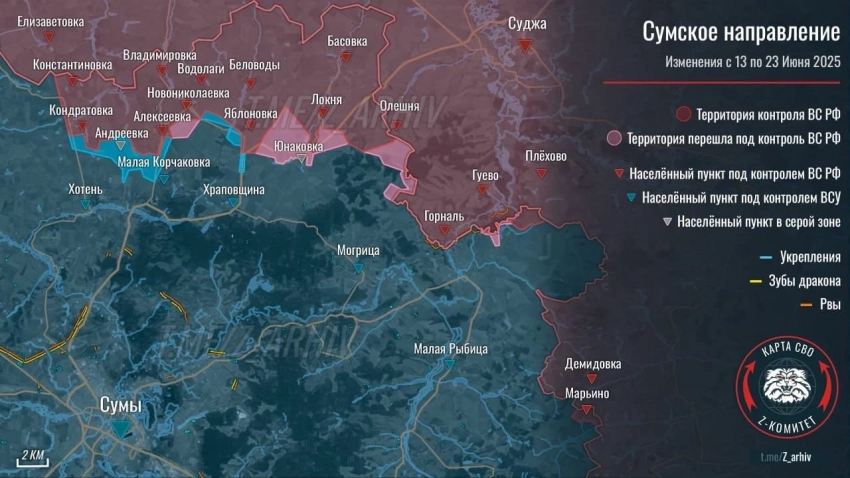 Карта боевых действий на Украине. Обстановка в зоне СВО на 26.06.2025