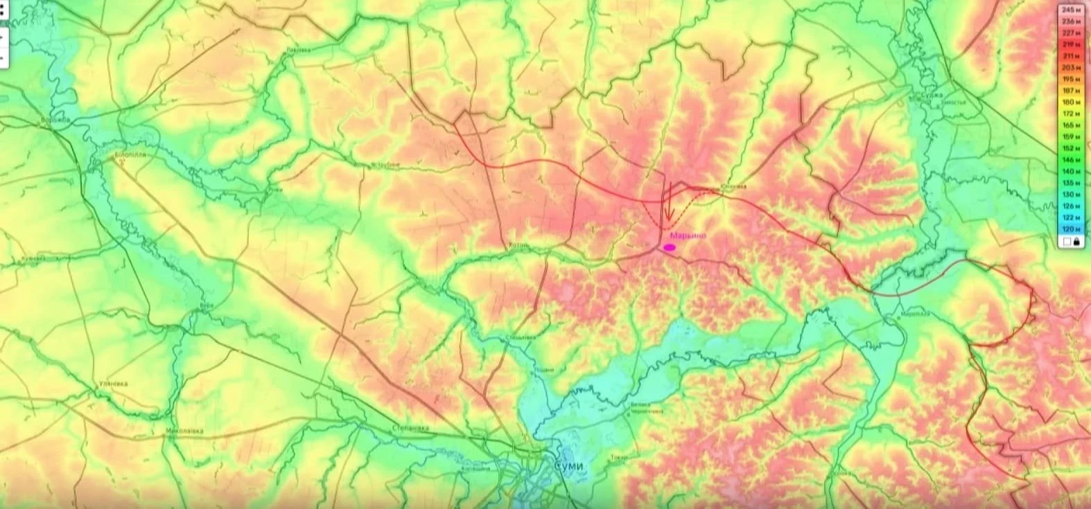"Юго-западнее Юнаковки мы движемся на Марьино, если мы его берём, то опять же выходим в леса, холмистые леса северо-восточнее Сум, где дальше можно двигаться уже до самого города", - подчеркнул блогер, пожелав традиционно удачи и успехов российским военнослужащим.