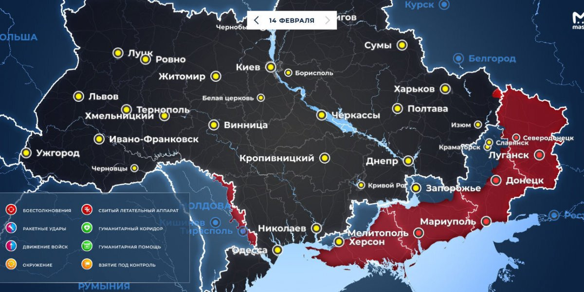 Обстановка на Донбассе и Украине на сегодняшний день, 16 февраля, карта боевых действий и продвижения войск РФ, последний брифинг Минобороны, свежие видео-сводки от Юрия Подоляки, Игоря Конашенкова и Михаила Онуфриенко — собрали актуальные новости по Украине.