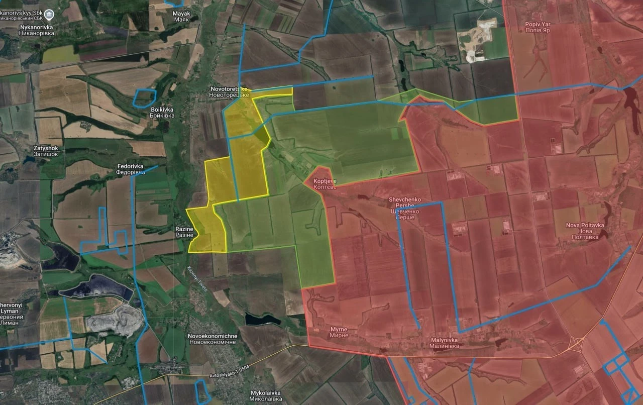На Покровском направлении не смолкают бои вдоль границы с Днепропетровщиной. Зачистка от Орехово до Новоукраинки. В Муравке - ожесточённые бои, на восточном фланге - активные штурмы в Новоторецком, Фёдоровке. Вооружённые силы Украины (ВСУ) пытаются контратаковать в Миролюбовке. Сегодня стало известно о том, что на Покровском направлении российские силы взяли под контроль село Разино и, преследуя отступающего противника, подошли к окраинам села Фёдоровка, где идут бои. Об этом рассказал военный корреспондент Тимофей Ермаков. По его словам, это шаг к выполнению важной задачи - перекрытию путей снабжения в районе Покровска и Мирнограда с севера. Если войска дойдут до Родинского, они смогут контролировать главную дорогу снабжения. А наступление от Удачного и Котлино к Гришино полностью отрежет логистику в этот район.