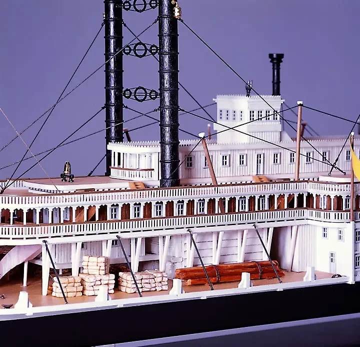Артефакты истории техники. В прошлый раз мы рассказали о миссисипских пароходах-гигантах. Сегодня наш рассказ будет посвящен их моделям в том числе, причем моделям не из полистирола, а из деревянных полуготовых деталей, над которыми придется потрудиться, но и выглядят они куда более впечатляюще. В предыдущей статье мы уже приводили пример с несколькими полистироловыми моделями парохода «Роберт Е. Ли». Однако его модель итальянская фирма «Амати» выпускает и в виде сборной модели из дерева, причем в масштабе М:150. Цена модели довольно велика и на сегодня составляет около 37 300 рублей – то есть сумму совсем немаленькую.
