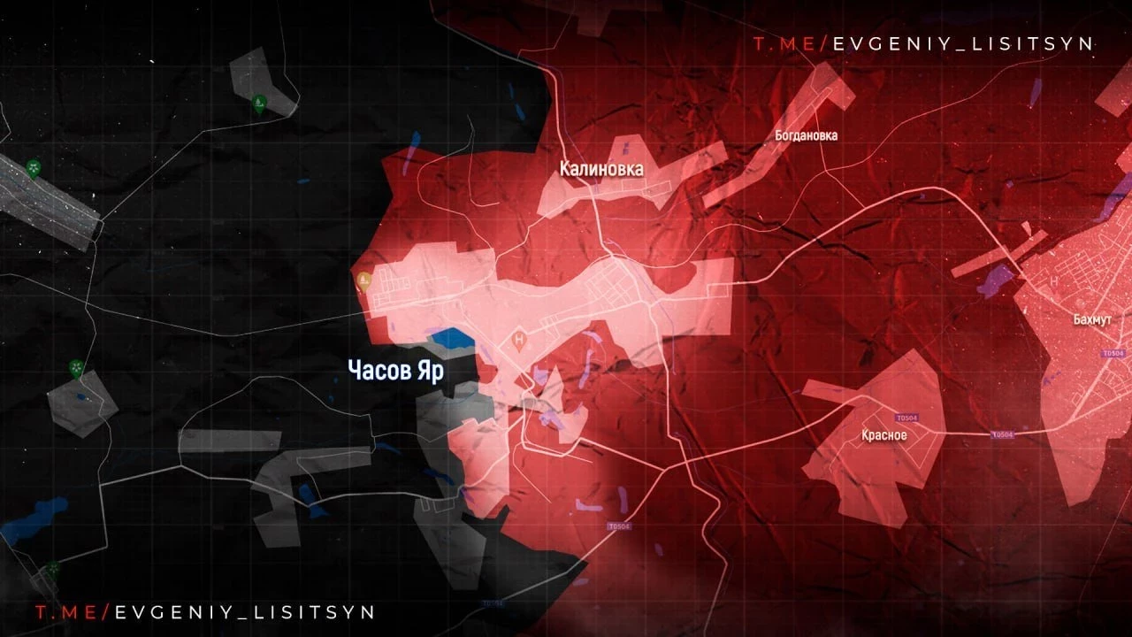 На Константиновском направлении российские войска расширили контроль территории в районе Часового Яра. Также отмечаются интенсивные боестолкновения в Щербиновке.