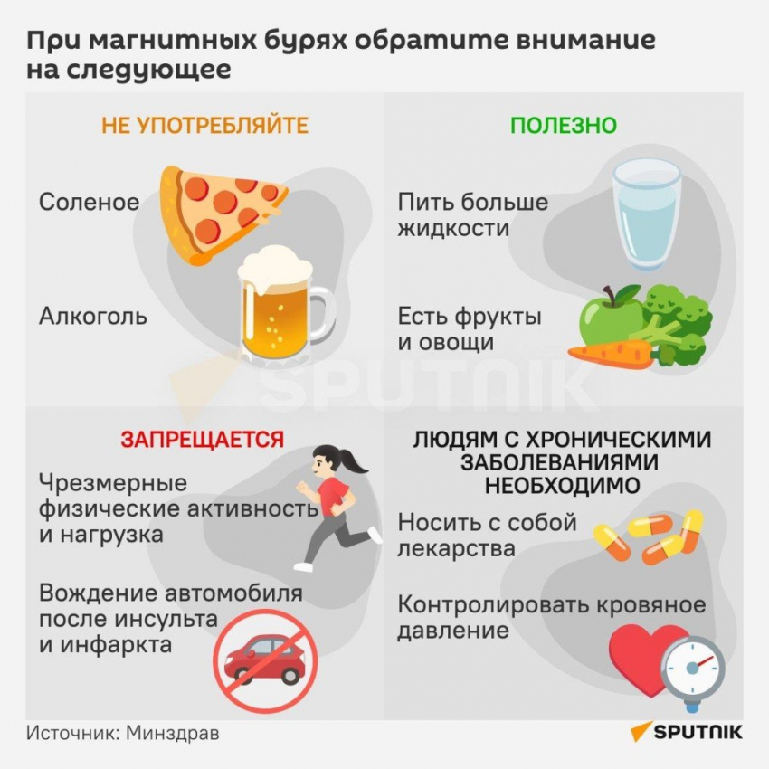 В период магнитных бурь желательно избегать излишнего употребления алкоголя, так как это может только усугубить симптомы отрицательного влияния магнитных бурь на организм.