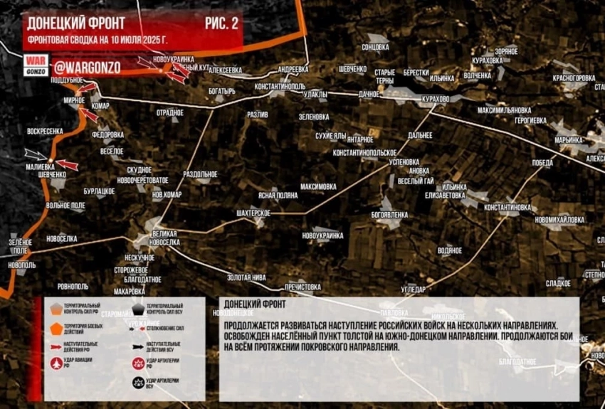 Карта боевых действий на Украине. Ситуация в зоне СВО на 10.07.2025