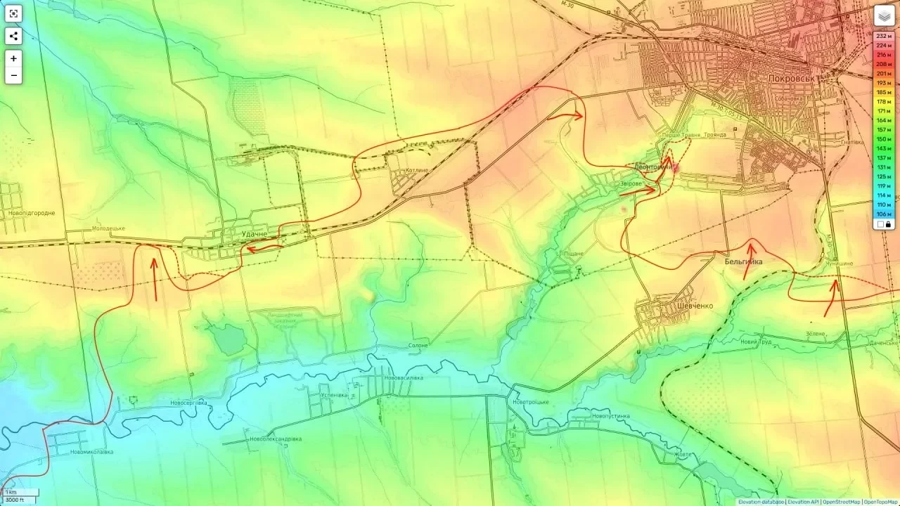 Эксперты отмечают, что дальнейшее продвижение российской армии в этом секторе позволит пройти через Родинское «справа налево» и тем самым поставить под угрозу весь восточный фланг обороны украинской группировки в узле Покровск - Мирноград.