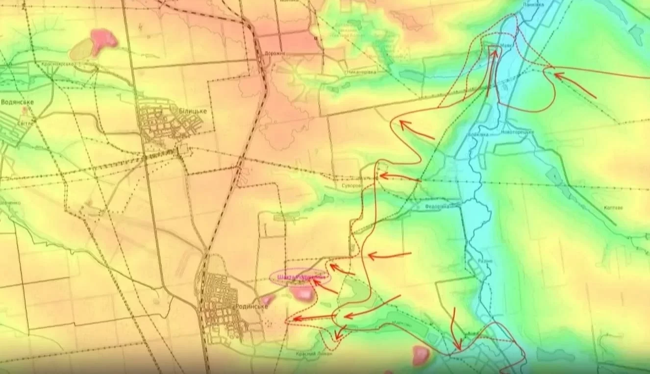 Параллельно с прорывом в черту Покровска, российские войска развивают наступление на шахты «Краснолиманская» и «Родинская». По имеющимся данным, ВСУ были вынуждены покинуть позиции у первой из них, что открыло возможности для охвата с юга города Родинское.
