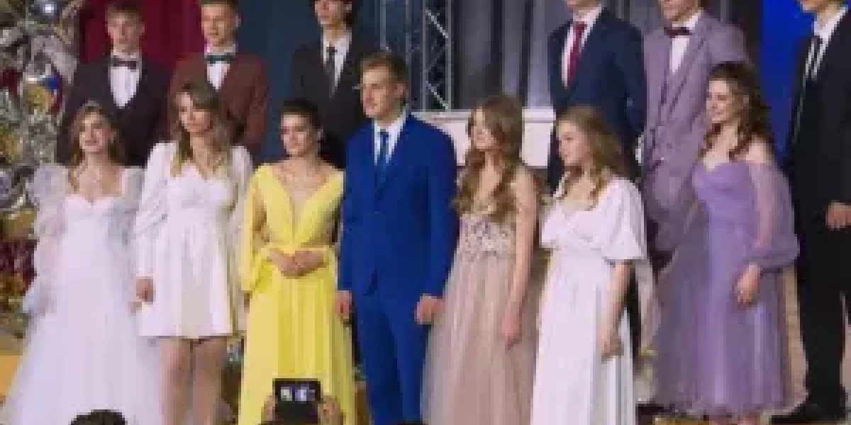 Николай Лукашенко (в центре) на выпускном-2022 в школе. Фото опубликовал канал ОНТ. Что это за школа, не сообщается
