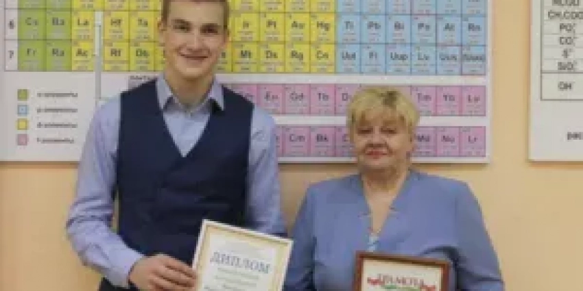 Николай Лукашенко и его учительница по химии после награждения дипломом 3-й степени на областной олимпиаде. 9 класс