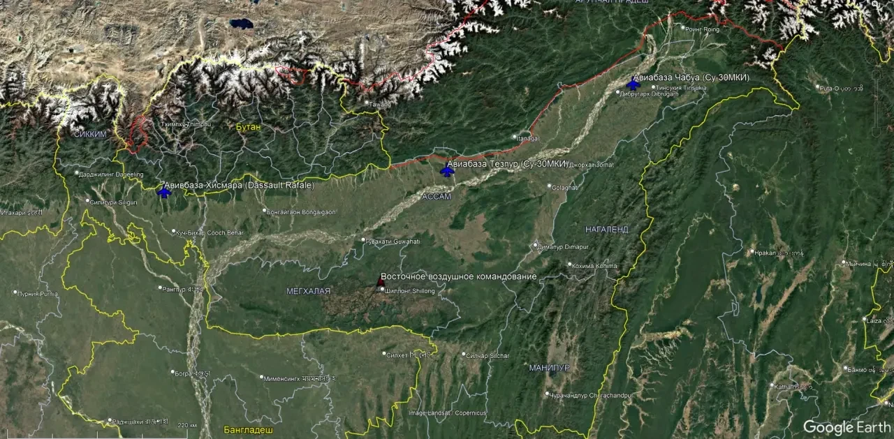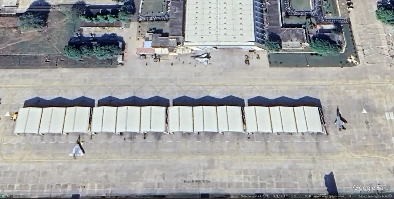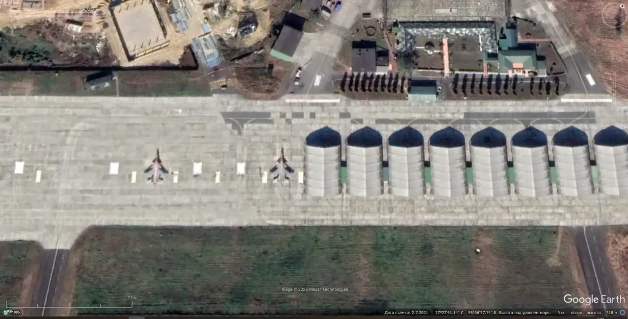 Спутниковый снимок Google Earth: истребители Су-30МКИ Восточного воздушного командования на авиабазе Чабуа