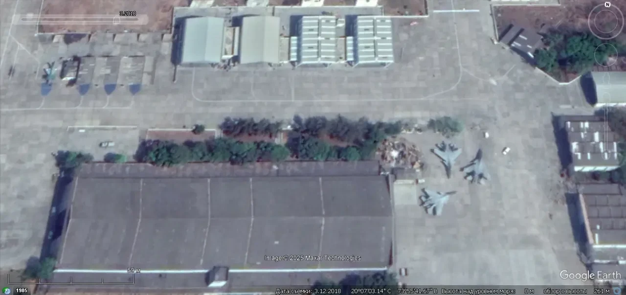 Спутниковый снимок Google Earth: истребители МиГ-21 на авиабазе Нал. Снимок сделан в декабре 2022 года