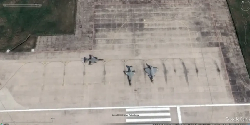 Спутниковый снимок Google Earth: истребитель Rafale и истребители-бомбардировщики Jaguar на авиабазе Амбала. Снимок сделан в марте 2022 года