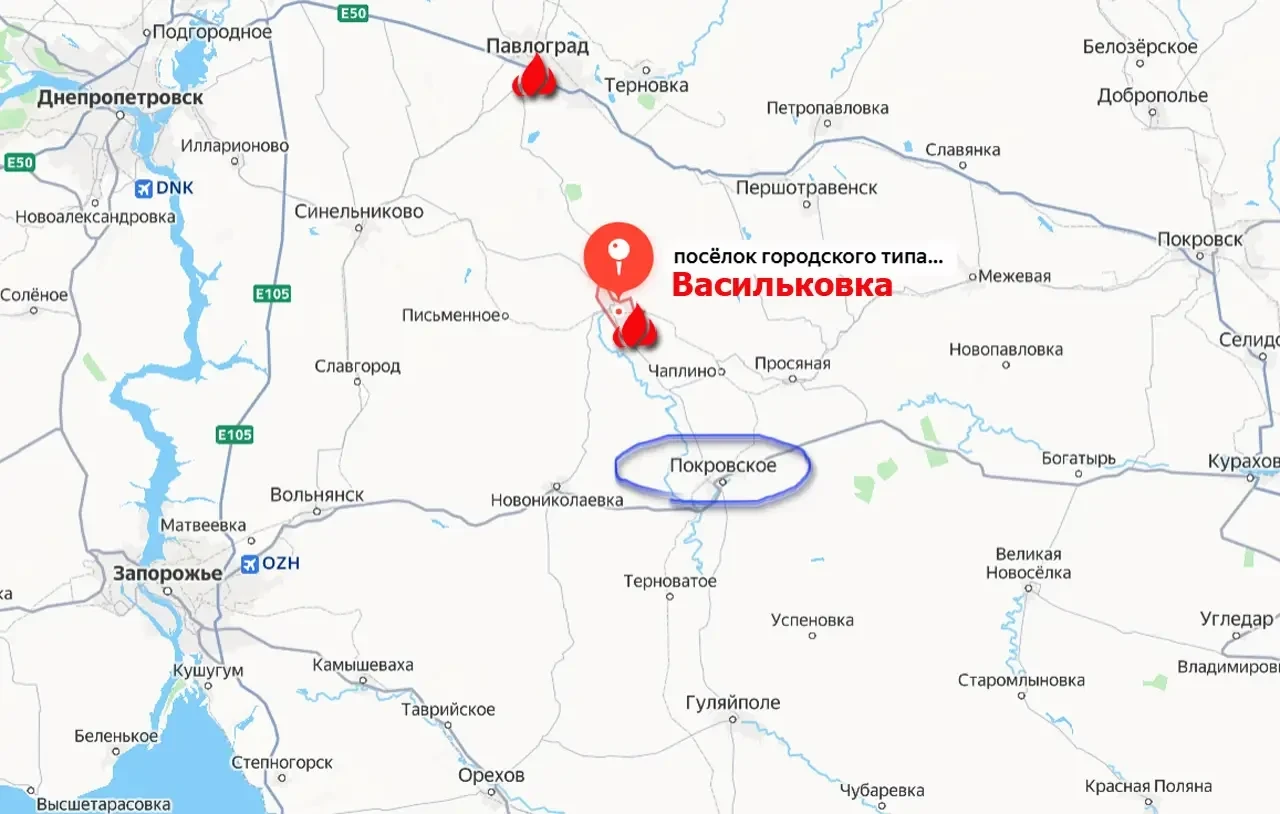 Паблики противника пишут о нескольких прилётах в Васильковке Днепропетровской области. Это посёлок городского типа, через который идёт основное снабжение ВСУ в районе пгт Покровское на юго-востоке Днепропетровщины. К Покровскому приближаются российские войска.