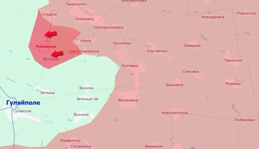 Продвижение армии России на востоке Запорожской области продолжается. Его интенсивность достаточно высокая, по средним меркам СВО. ВС РФ проходят по несколько километров за сутки.