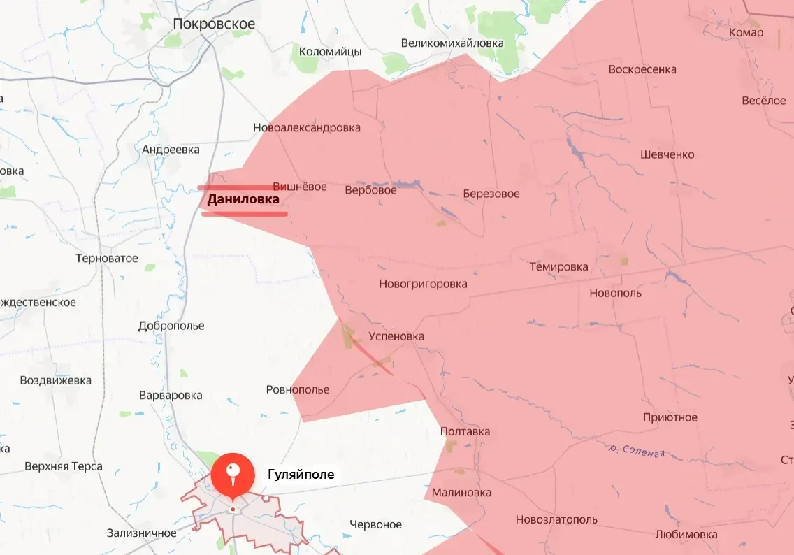 Украинский военный с позывным Мучной пишет о том, что российские войска, взяв Даниловку под контроль, «перекусили» логистику к северу от Гуляйполя. По словам украинского офицера, который активно комментирует происходящее на фронте, «это резко ограничилось маневренность и возможность быстро подтягивать к Гуляйполю резервы».
