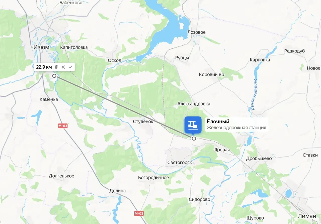 От новых российских позиций под Святогорском до Харьковщины – около 6 км, причём уже менее 23 км до ключевого узла военной логистики ВСУ – города Изюм. Это расстояние без особых проблем покрывается FPV-дронами, что превращает ситуацию с логистикой противника на указанном направлении в достаточно сложную.