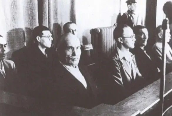 Г. Семенов (на переднем плане) и К. Родзаевский во время заседания суда