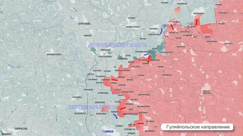 Однако наиболее динамичные события разворачиваются на Гуляйпольском направлении. Здесь ВС РФ фактически завершили освобождение населенного пункта Зеленый Гай и заканчивают зачистку Червоного.