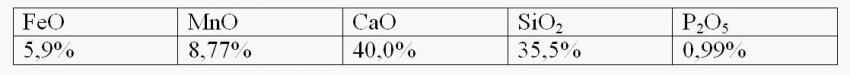 Первая шлакообразующая смесь состояла из кусковой извести 900 кг., формовочной земли 50 кг., присаженной при высоком содержании углерода в ванне (0,82%), что дало возможность ванне интенсивно прокипеть.