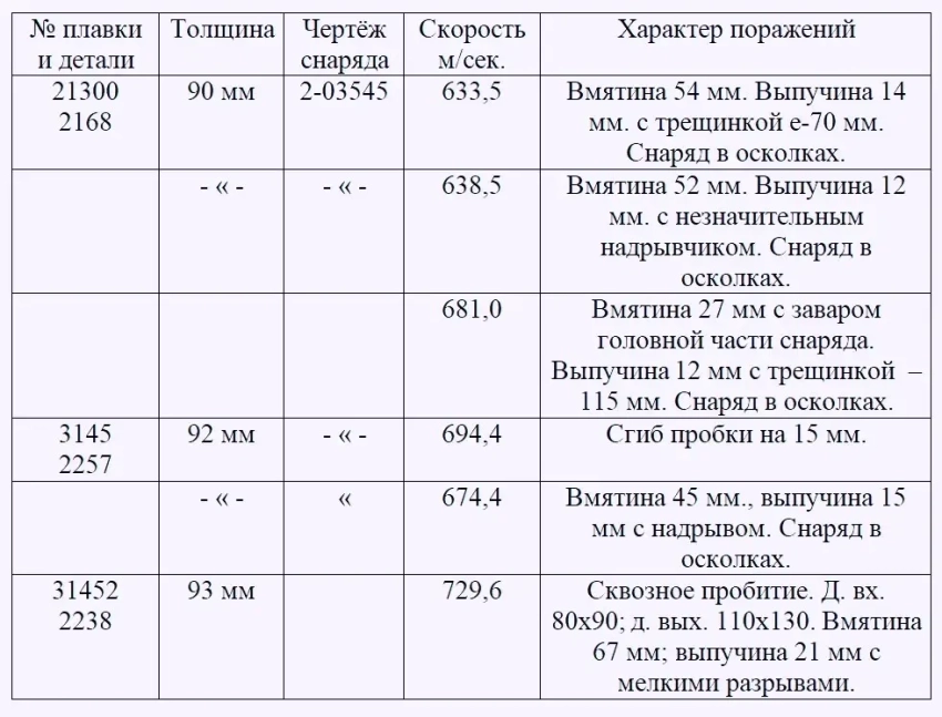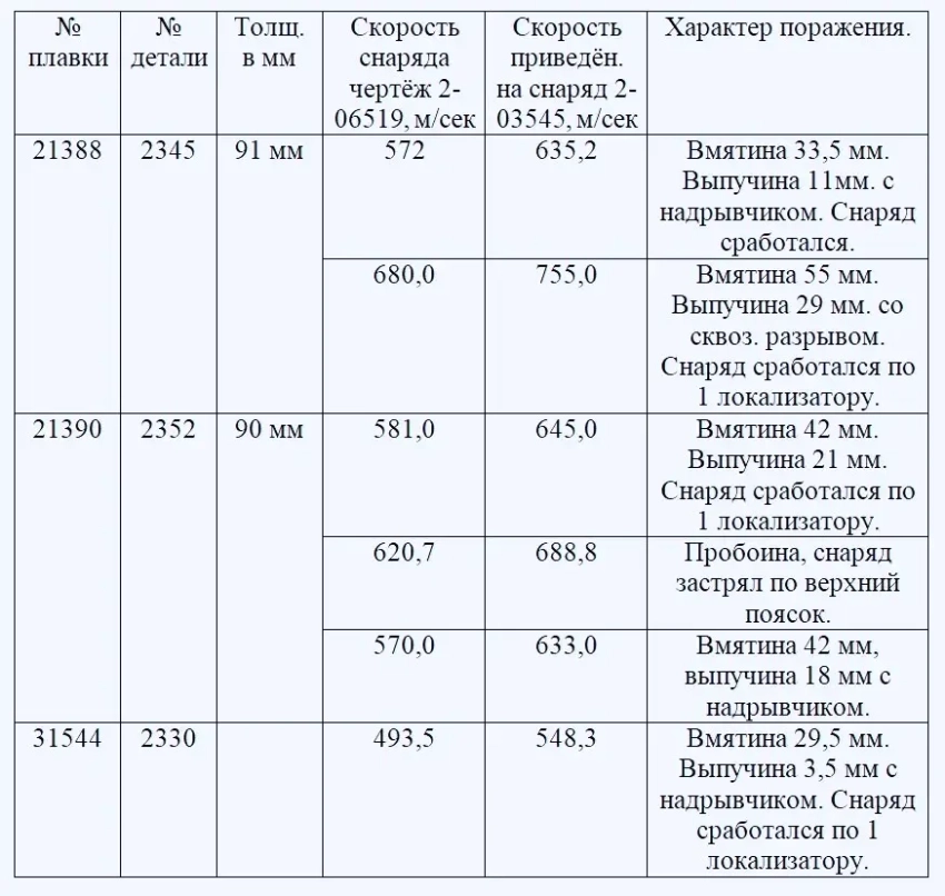 4. Вязкость данной опытной башни не ниже ранее испытывавшихся литых башен марки стали ФД 6674, установленная обстрелом 76-мм снарядом.