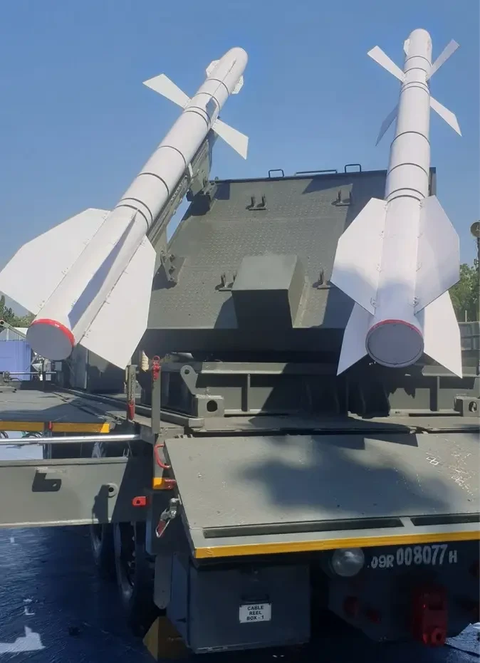Для ВВС Индии поставляются мобильные пусковые установки на колёсном шасси с поворотной частью и тремя рельсовыми направляющими.
