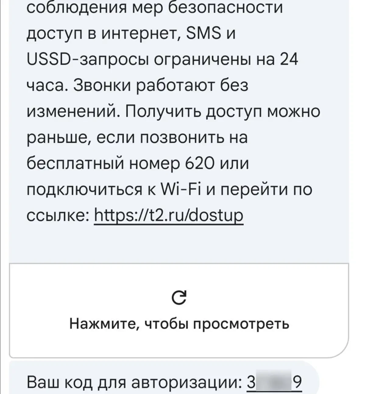 У первого оператора при наличии сети Wi-Fi можно перейти по ссылке, после чего ввести код авторизации, который придёт в СМС-сообщении. Чаще всего доступ к полному функционалу пакета услуг связи восстанавливается в течение нескольких минут. Оператор информирует, что если этого не произошло, рекомендуется перезагрузить телефон.