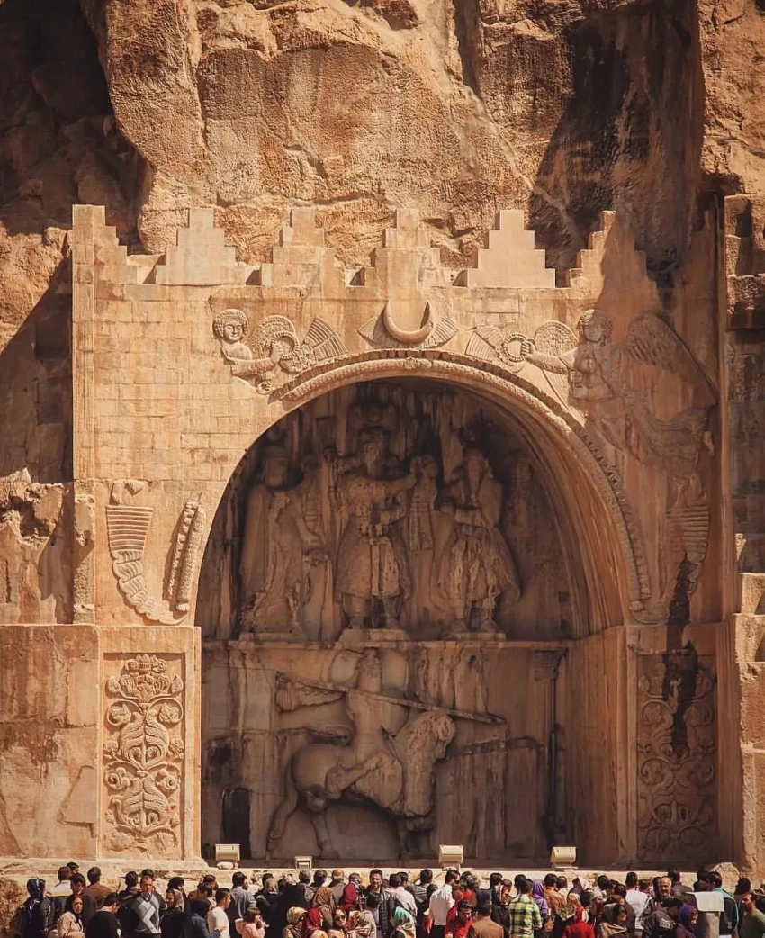 Барельефы в Таке-Бостан привлекают множество туристов…