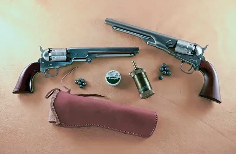 Ну а как обстоит дело с капсюльными кольтами сегодня? О производстве «современных кольтов» известно следующее: их история началась с Вэла Форжетта-младшего в 1959 году. Он начал сотрудничать с Альдо Уберти, в результате чего появилась первая реплика 1851 «Морского», продававшаяся через новую компанию «Морское оружие». Интерес к ней был особенно высок, поскольку в 1961 году отмечалось 100-летие Гражданской войны и в США вызывало интерес буквально все, связанное с этим событием, и револьверы того времени, так же, кстати, как и книга М. Митчелл «Унесенные ветром», шли нарасхват!