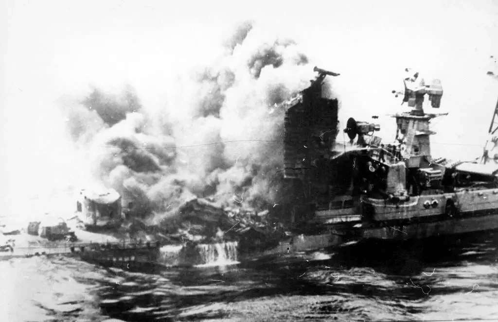 Роковым, как выяснилось, недостатком данного комплекса было расположение погребов боезапаса выше ватерлинии — в случае пожара их было невозможно затопить. Ну и погреба зенитного ракетного, авиационного, артиллерийского вооружения, глубинных бомб и авиационного керосина были смежными, не разделялись коффердамами и находились поблизости от машинного отделения. Надстройки корабля, трубы и мачты были выполнены из алюминиево-магниевого сплава. В общем, к вопросам живучести корабля были вопросы, хотя и не принципиальные.