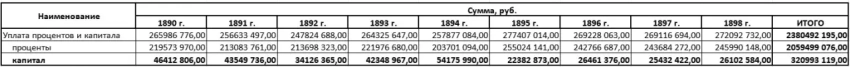 Как видно из приведённой выше таблицы, в период 1890-1898 гг. дефицит бюджетов Российской империи составил 515,5 млн руб. Но в то же время за эти 9 лет Россия погасила кредитов и займов почти 321 млн руб.