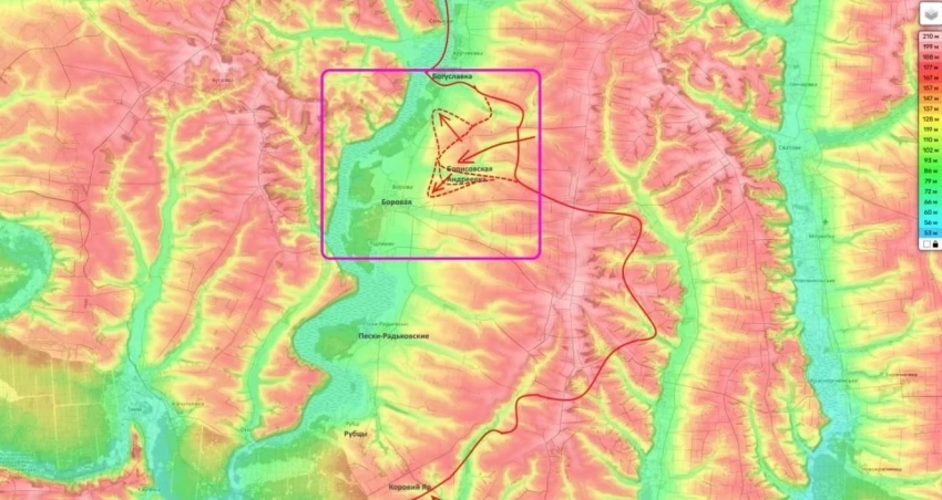 По информации блогера, российские военные ведут бои с целью ликвидации плацдарма ВСУ на восточном берегу реки Оскол.