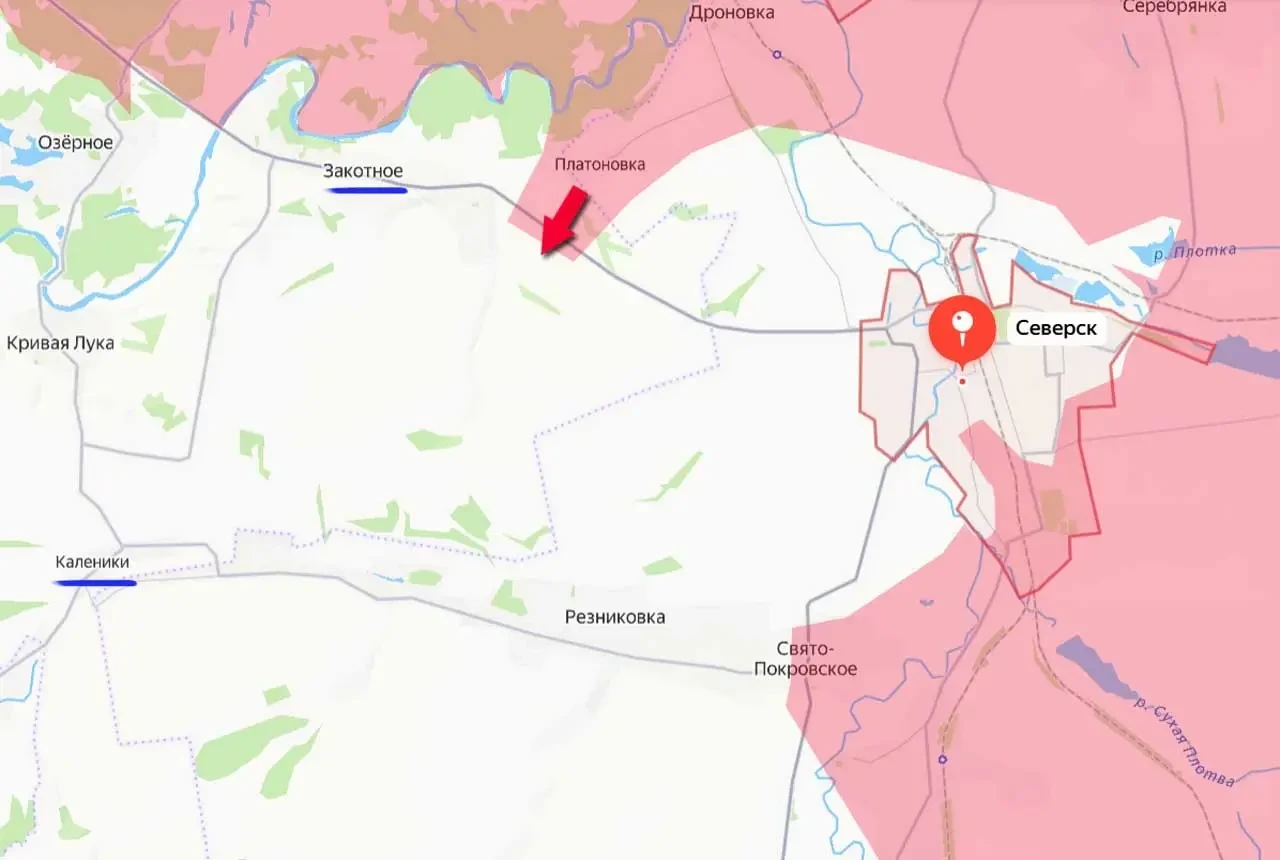 Также российские войска расширили зону контроля в районе села Свято-Покровское, что к югу от Северска. Всё этого свидетельствует о том, что город полностью блокирован. Если до перерезания «платоновского» участка указанной автодороги у гарнизона ВСУ ещё оставалась возможность получать снабжение по единственному маршруту – через ответвление Каленики-Закотное, то теперь и этот вариант противник утратил.