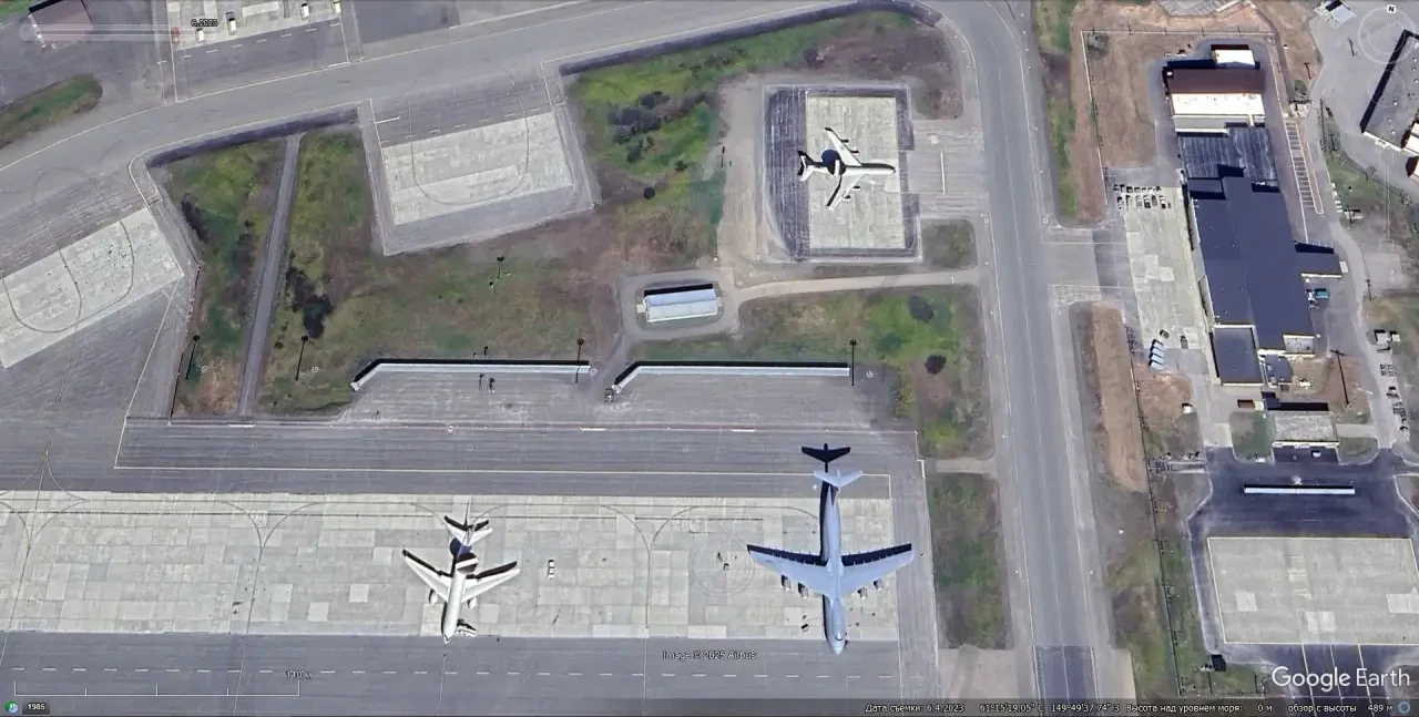 Спутниковый снимок Google Earth: БПЛА над взлётно-посадочной полосой авиабазы Крич