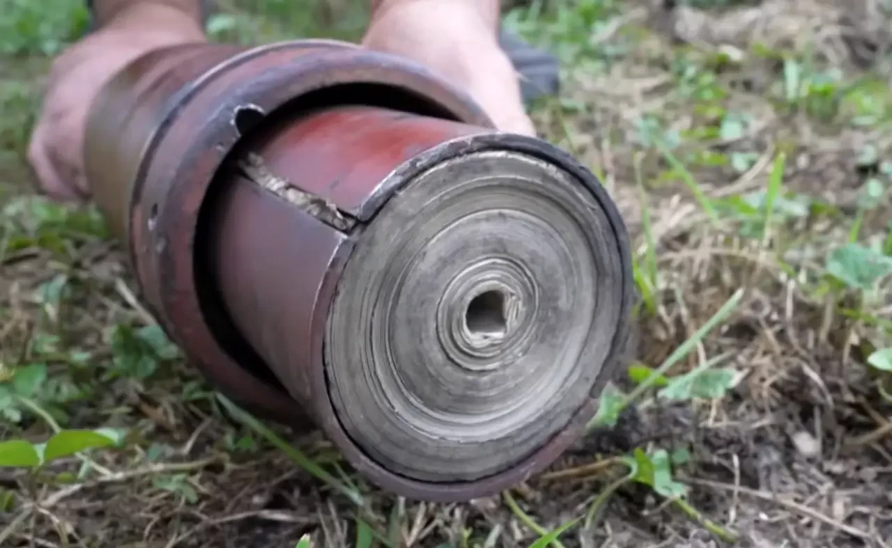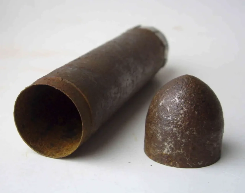 Открытый корпус 30-мм агитационной гранаты с листовками внутри
