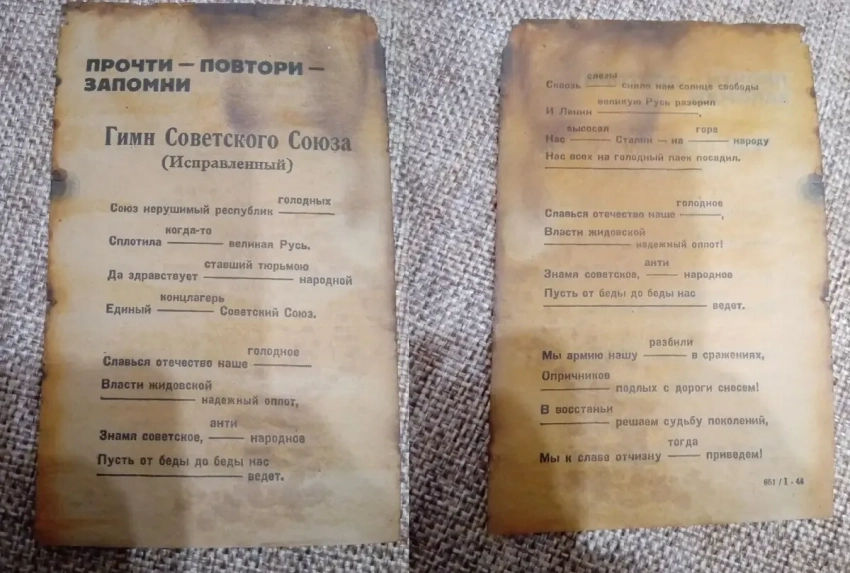 Листовки, замаскированные под партийный билет ВКП(б), извлечённые из агитационной гранаты
