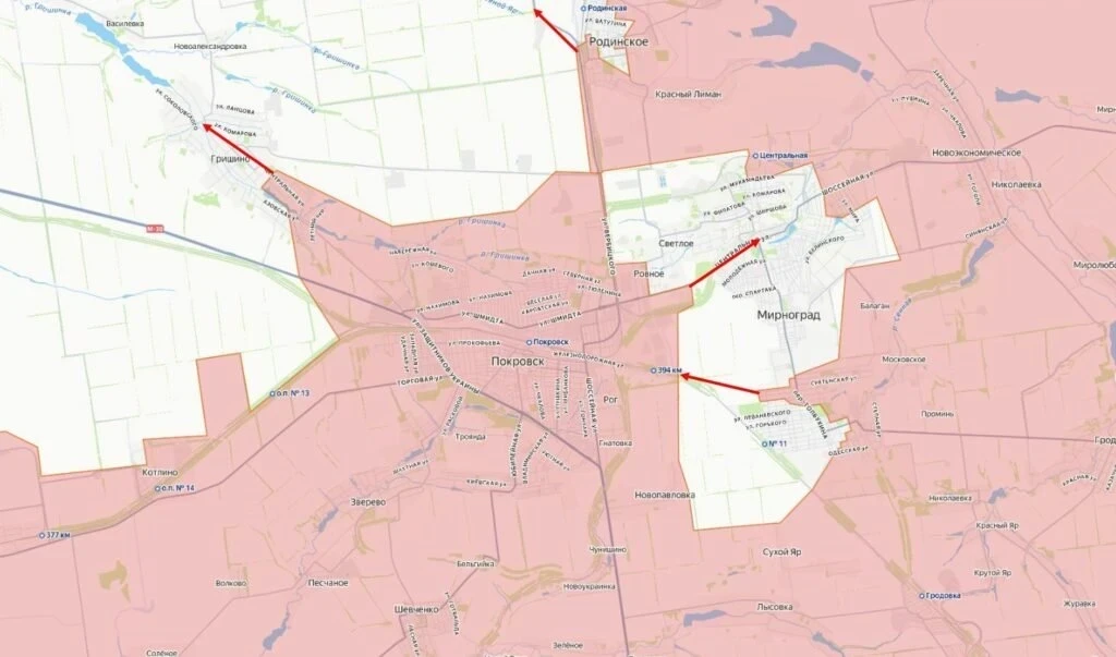 На Красноармейском направлении, по данным с мест, завершена зачистка Красноармейска. В Димитрове окружены несколько батальонов ВСУ, для которых нет путей отхода. МО РФ объявило об освобождении села Ровное, расположенном на трассе между Красноармейском и Димитровым.