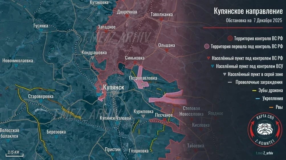 ВС России берут под контроль ключевые узлы снабжения: карта боевых действий на 08.12.2025
