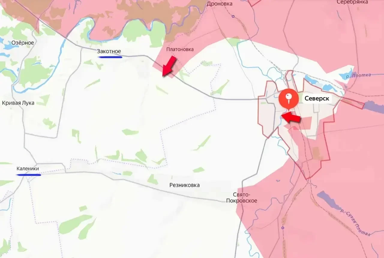 Также российские подразделения вышли на дорогу Закотное-Северск и овладели Ямпольским перекрёстком. Параллельно идут бои в западной части Ставков и увеличивается зона контроля в восточной части Дробышево. Также продолжаются бои в лесах между Новосёловкой и Яровой и наступление на опорные пункты у Коровьего Яра.