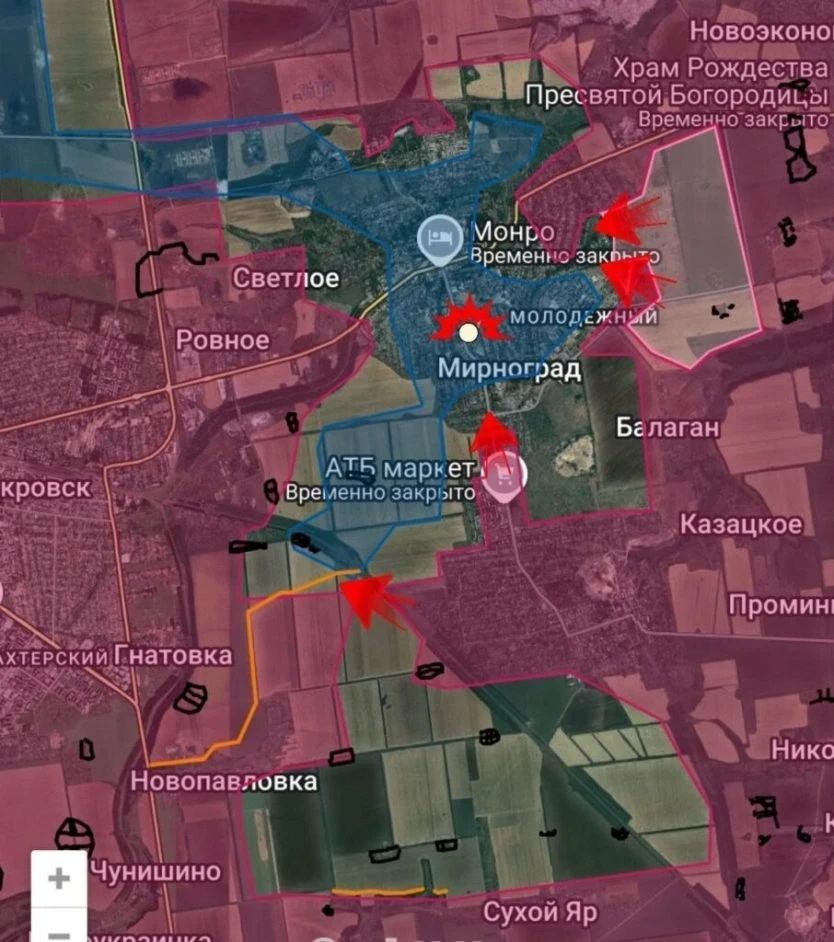 Накануне начальник Генштаба ВС РФ генерал армии Валерий Герасимов заявил, что после освобождения Красноармейска главная задача группировки «Центр» - ликвидировать окруженные у Димитрова формирования ВСУ. Он также сообщил, что ВС РФ уже взяли под полный контроль южную часть Димитрова - свыше 30% зданий в городе.
