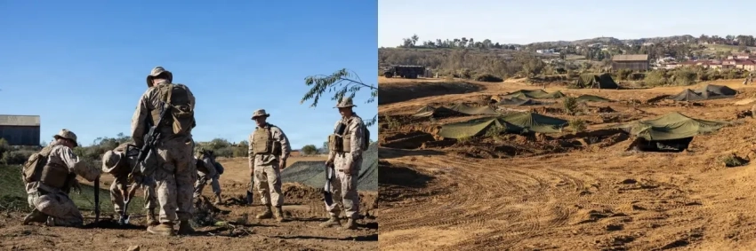 В рамках учений Steel Knight 25 в Кэмп-Пендлтоне (Калифорния) одно из подразделений снабжения КМП США создало сеть фортификационных сооружений, в которых пыталось прятать личный состав и военную технику. В командовании пояснили по этому поводу: