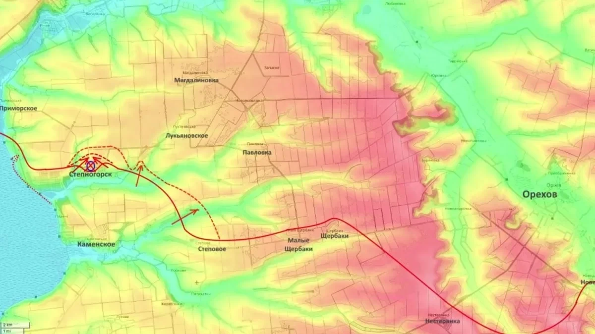 Подразделения группировки «Днепр» добились существенных успехов. К настоящему моменту практически полностью освобожден населенный пункт Степногорск (за исключением небольшого участка на северо-востоке). Развивая успех, российские штурмовики продолжают движение на Лукьяновское.