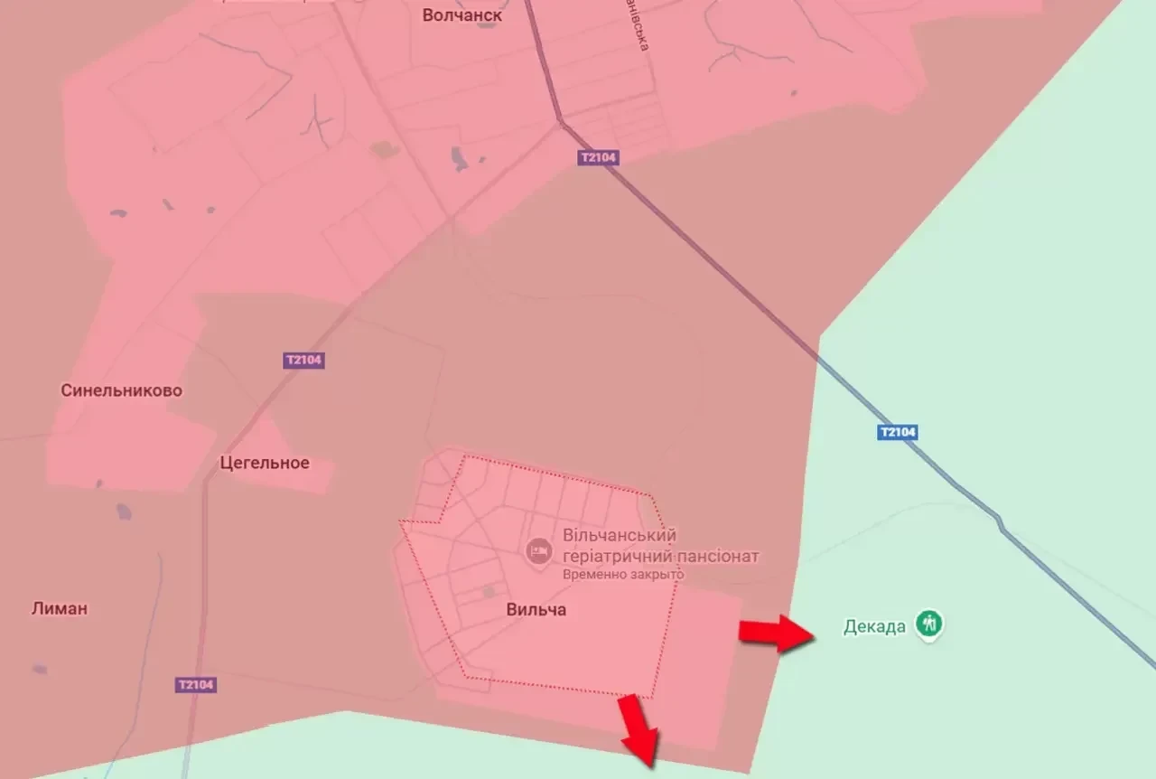 Российские войска продолжают продвижение южнее и восточнее Вильчи. В частности, бои идут за село Волчанские хутора.