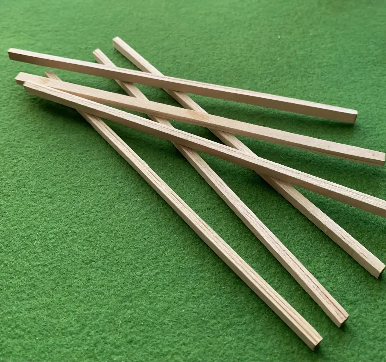 Макет такой осадной башни совсем не трудно сделать из палочек-мешалочек для кофе, склеенных клеем ПВА. Надо только иметь в виду, что они бывают разные. Для нашей цели лучше всего подходят самые длинные и толстые: 178х6х1,3 мм. Из них получаются отличные несущие балки. А вот на сами «доски» для обшивки башни годятся более короткие и тонкие: 140х5х1 мм.