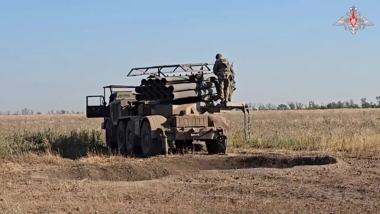 Система «Ураган» во время подготовки к стрельбе