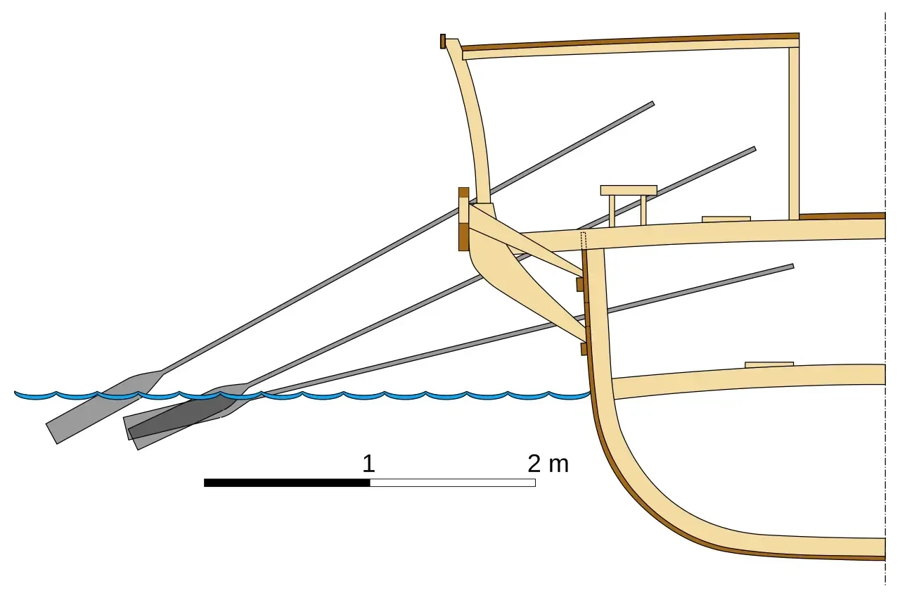 Вот только как быть с более крупными судами-полиремами? Ведь потом появились и «шестерки», а затем и «семерки», «восьмерки», «девятки» и «десятки». Но и в эпоху Возрождения, и вплоть до XIX века считалось, что гребцы и на триремах, и на более поздних судах была похожа на устройство современных по тому времени галер, где на двух уровнях сидело по гребцу, и каждый из них управлял одним веслом. Исследования XX века опровергли эту теорию и показали, что три уровня были максимальным практическим пределом. А все «четвёрки», «пятерки» и т. д. отражали не ряды весел с каждой стороны судна, а ряды гребцов с каждой стороны корабля, работающих на одно весло. Да оно и понятно, со «пятого этажа» гребец «пятерки» просто физически не смог бы орудовать своим длинным и потому тяжелым веслом, а уж про «шестерку» и «семерку» и говорить нечего.