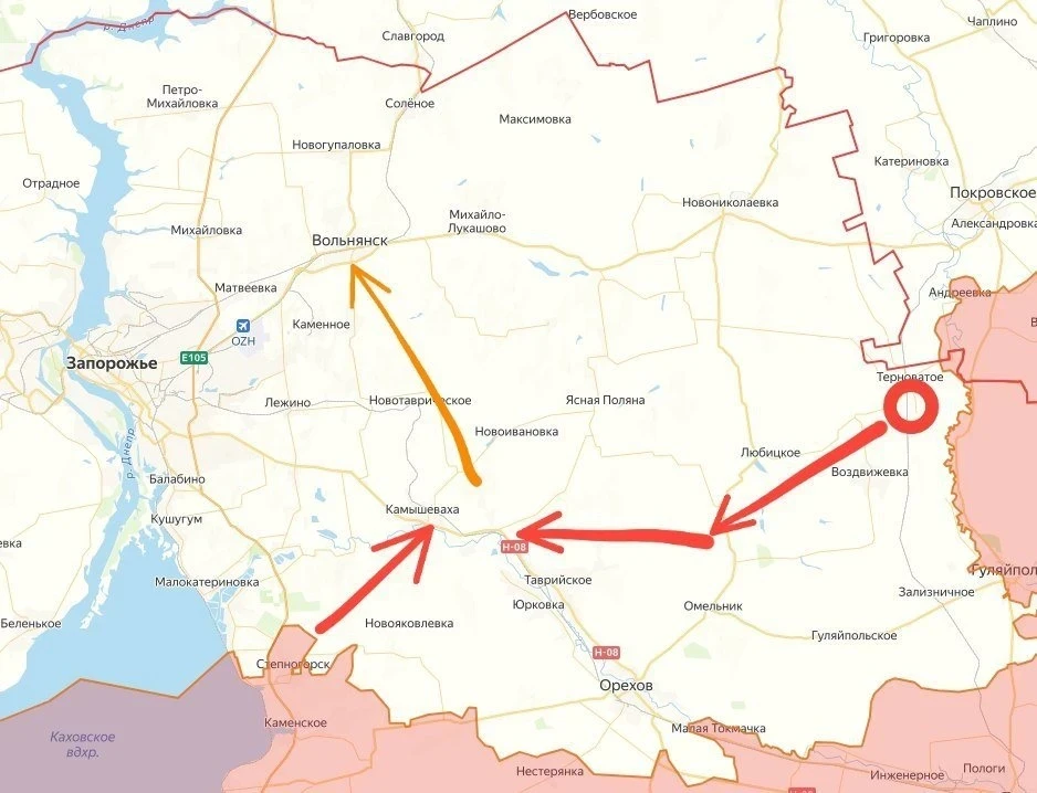 За Терноватым открывается путь на Омельник и далее на Орехов - последний стратегический узел ВСУ в Запорожской области. Наши части уже продвинулись за ж/д пути южнее Косовцево.