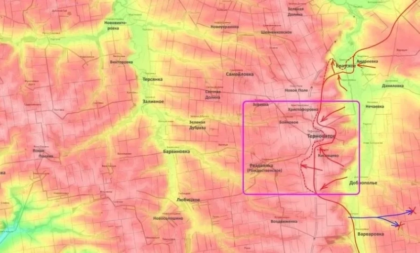 Особое внимание приковано к району Терноватого. Здесь российские штурмовики атакуют одновременно с юга, востока и севера. Важным тактическим достижением стало преодоление железнодорожной насыпи южнее поселка, что открыло путь к Рождественскому.