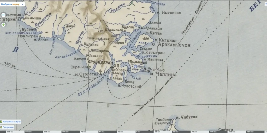 Карта несения службы катерами и ПОГЗ 110 ПОГО на Провиденском направлении и б. Ткачен