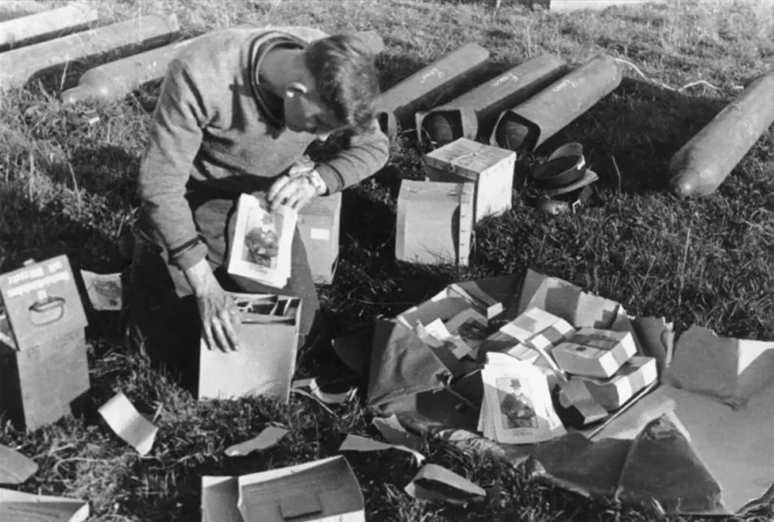 Три немецких агитационных бомбы-бурака в закрытом состоянии